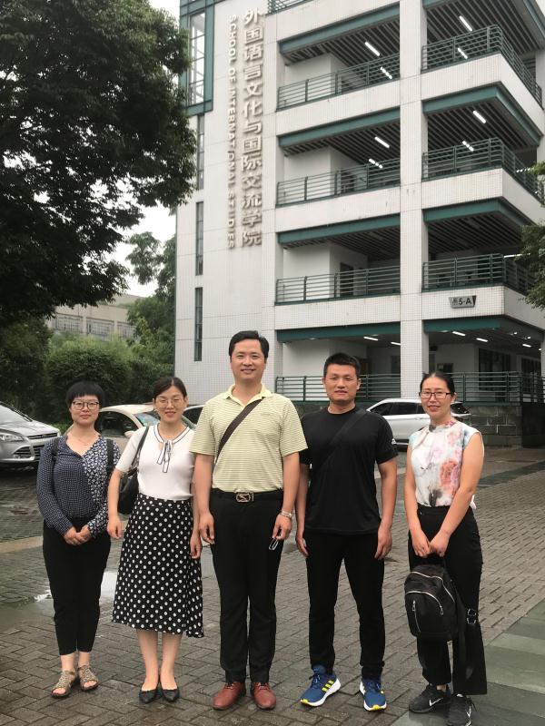 为进一步完善黄小说 大学英语课程体系,加快学习了解新的教学模式, 使黄小说 大学英语教学质量再上一个新台阶,2019年6月21日,黄小说 视听说第一教研室负责人郭皓老师带领部分青年骨干教师一行5人,赴浙江大学外国语言文化与国际交流学院就大学英语分级教学、课程体系建设、混合式教学、慕课建设、考核方式等问题进行了专题调研交流活动。