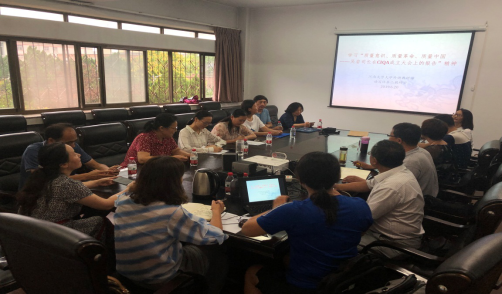 2019年6月20日上午8:30,黄小说 在老师们前期认真研读吴岩司长讲话的基础上,分教研室举行了“质量意识 质量革命 质量中国——吴岩司长在CIQA成立大会上的报告”的专题研讨。各教研室提炼了重点内容,设计了相关议题。
