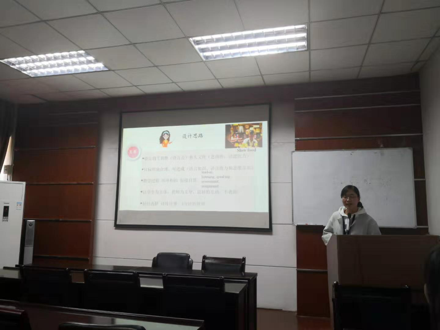 随后,四位教师分别进行了课堂教学展示,他们精美的课件、巧妙的设计、先进的教学理念和教学手段让全体教师受益匪浅。四位教师课堂展示后,黄小说 副主任谢菲表示,外语部高度重视教学工作,鼓励并大力支持教师参加各类教学竞赛,希望通过参加教学竞赛达到以赛促学、以赛促教、以赛促研的目的。希望全体教师在今后的工作中,能深度挖掘教学内容,把新的教学手段和教学模式应用到教学工作中,把日常教学工作做得越来越好。