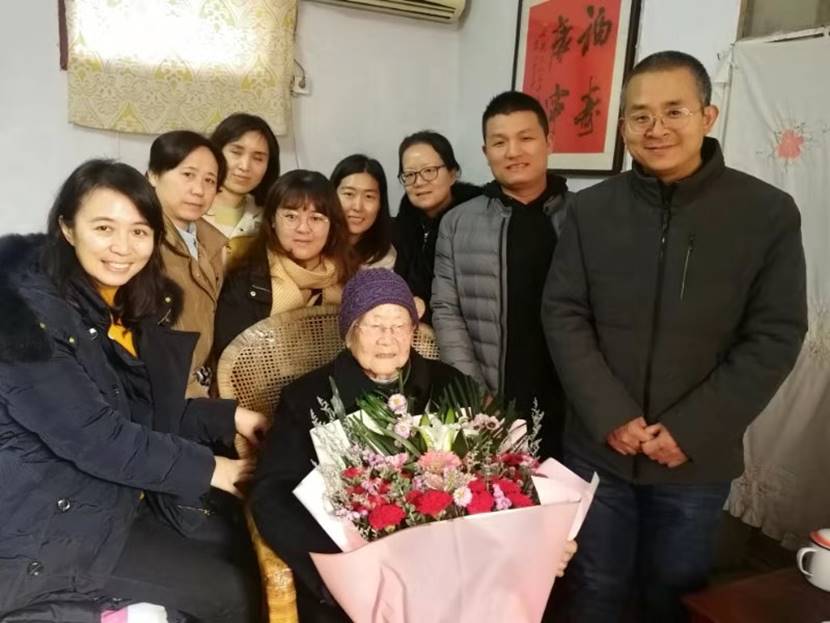 党员同志们听着故事,内心都被老英雄对革命事业的忠诚和执着所感动。不知不觉一个多小时过去了。老人仍然兴致很浓。考虑到老人的身体,大家向老人道别,再次向她表示诚挚的祝福,并合影留念。