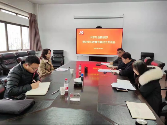 2022年1月19日上午,处级党员领导干部党史学习教育专题民主生活会在二楼会议室召开。处级领导干部杨剑波、蒋框、谢菲同志参加会议,校党史学习教育第四巡回指导组赵炎同志、权松立同志到会指导。
