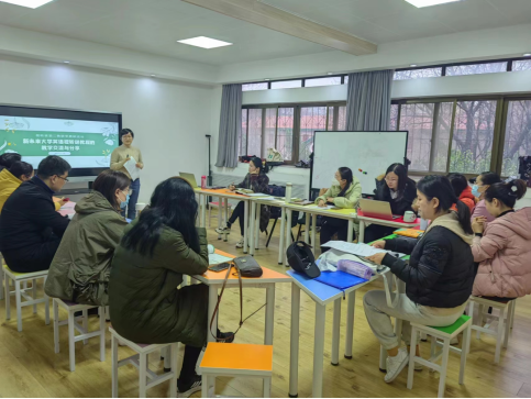 本次研讨会以新教材《新未来大学英语视听说》作为重点,结合大家一个学期以来的教学实践情况,彼此分享教学经验智慧,共同探讨攻克教学难题。会议开始之前,教研室全体教师分为三组进行了充分讨论和准备,并推选了发言代表。首先,石慧老师代表第一小组分享了丰富多彩的口语教学活动。他们认为,演讲活动话题应贴近学生生活,引起学生的参与兴趣;辩论要充分利用学生的自主性,话题设定让学生自主协商,辩论结束时让学生发问和点评。同时,口语活动的形式应尽量多元化,采用单人练习、双人对练、小组讨论、大班汇报等多种形式,照顾到不同学生的性格和需求。最为重要的是,视听说课堂要于无声处做好课程思政,例如,通过“perfect body”这一话题,引导学生明辨是非,提升批判思维能力,树立正确的健康观;通过讨论“人与自然”,鼓励大学生积极传承“天人合一”这一中国传统文化的思想精华,激发大学生作为新时代青年应有的责任担当意识,自觉保护环境,尊重自然,与自然和谐相处。