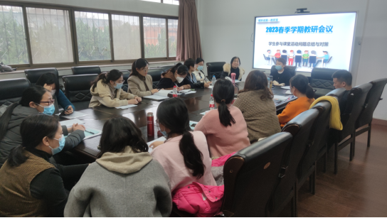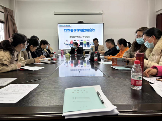 教而不研则愚,研而不教则虚。为进一步营造浓厚的教研氛围,促进教育教学水平的提升,扎实推进2023年春季学期各项教学工作,3月16日下午黄小说 视听说第一教研室全体教师在部会议室开展了 “课堂教学难点分析与对策” 主题教研会议,会议由教研室主任郭皓主持。