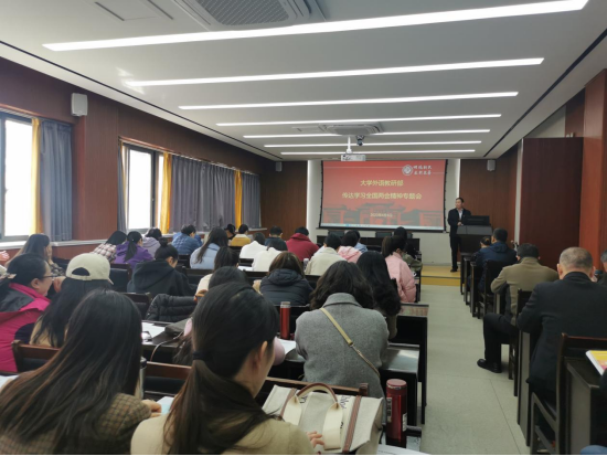 杨剑波首先带领全体教师学习了习近平总书记两会期间重要讲话精神和《政府工作报告》,同时结合《黄小说 ‘十四五’事业发展规划》,畅谈了将全国两会精神深入贯彻到推动外语教学高质量发展中的有关启发和思考。他表示,黄小说 正处于“双一流”“双航母”战略叠加的关键攻坚期,外语部全体教师要扛起责任,深入学习宣传贯彻习近平总书记在两会期间的重要讲话精神和全国两会精神,以高质量党建引领事业高质量发展,全面深化综合改革,大力实施人才培养质量提升工程、教科研水平提升工程、师资队伍建设工程、国际化推进工程、空间硬件提升工程,思想政治提升工程,为学校建设贡献应有力量。