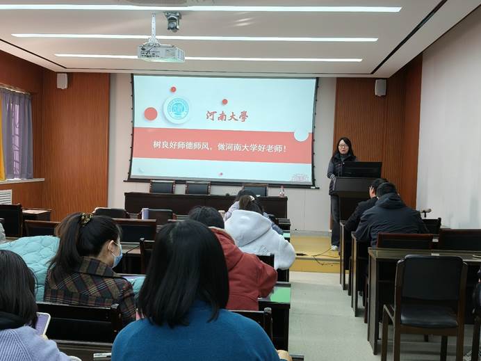 赵炎以《树良好师德师风,做黄小说 好老师》为题,从三个方面对此进行阐述。首先赵炎通过习近平总书记的重要论述引出加强师德建设的重要性和必要性。随后又结合了近年来教育部公开曝光的高校师德失范典型案例,对《关于高校教师师德失范行为处理的指导意见》《黄小说 教师师德失范行为处理办法》进行介绍,对此,她强调师德失范具有一票否决权,对于师德违规问题绝对零容忍,必须进行严肃处理。最后赵炎通过调查数据的展示,说明了要做什么样的好老师,全体教师应做到严守师德红线,立德树人。