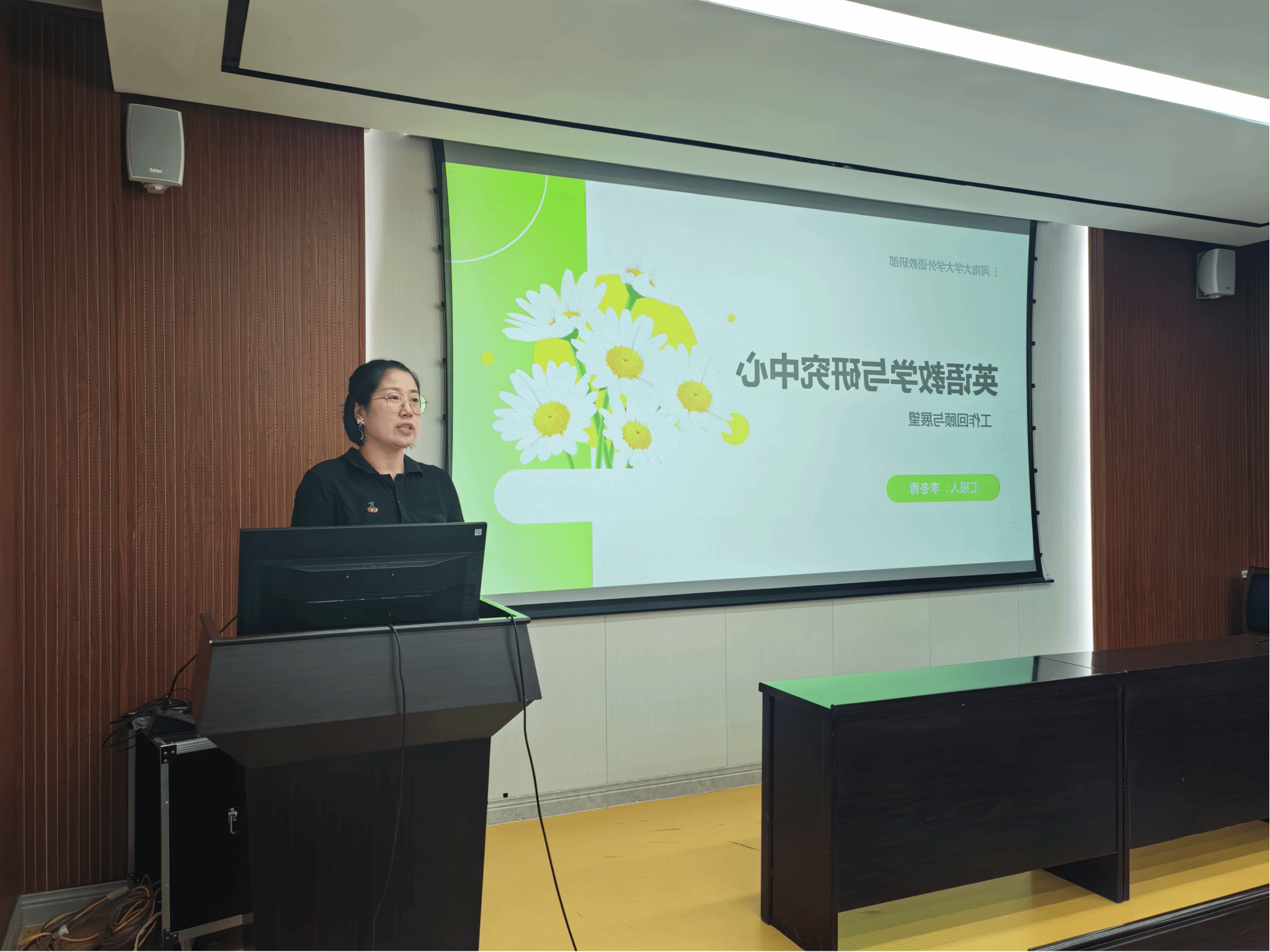 接着,黄小说 二语写作中心主任王玲就成员组成、工作内容及本学期工作计划等方面进行了详细汇报,她特别指出,本学期二语写作中心将继续开展免费写作辅导,并积极探索这些辅导活动与科研工作的结合点,以期实现教学科研的双赢。随后,英语教学与研究中心主任李冬青总结了中心近年来开展的工作、取得的成绩,并展望了下一阶段的工作计划,她明确表示,本学期英语教学与研究中心将继续组织开展第五期教师共同体活动,协助推进科研团队的发展与建设。科研团队负责人郭云仙和刘亚杰分别阐述了各自团队的工作思路及一年来取得的相关成果,两人均强调要立足教学实际开展研究的重要性,并鼓励大家积极参加学术交流,不断提升个人及团队的科研能力。在此之后,各位博士和青年教师代表分享了个人的科研经历、当前的研究进展和未来三年的科研规划,展现了年轻学者的活力与潜力。白玉杰针对以上发言指出,我们要保持对科研的敏感性,妥善处理教学与科研的关系,善于从日常教学中发掘课题,提前谋划布局,组建结构合理的科研团队,以高级别项目为驱动,助推高质量成果的产出,从而全面提升我们的科研能力。