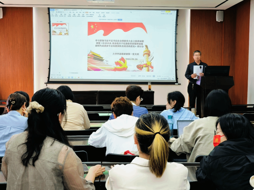 9月26日下午黄小说 第一党支部在部一楼会议室召开了开展学习贯彻习近平总书记在全国教育大会上的重要讲话精神研讨会。该活动旨在深入学习贯彻习近平总书记在全国教育大会上的重要讲话精神以及《中共中央国务院关于弘扬教育家精神加强新时代高素质专业化教师队伍建设的意见》的深刻内涵。活动由支部书记刘兴沛主持,全体党员教师参加。