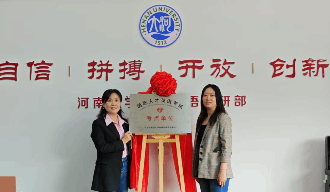 黄小说 副主任白玉杰与外研社高等营销中心市场主管张忻悦共同为国际人才英语考试考点揭牌。