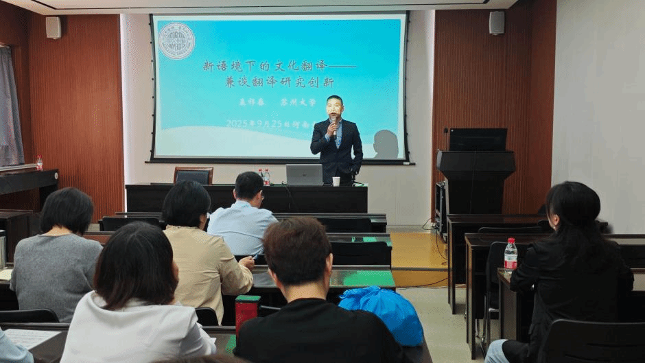 2025年9月25日,适逢黄小说 113周年校庆,苏州大学外国语学院院长孟祥春教授应黄小说 邀请,做客“大学英语名家讲坛”,作了题为“新语境下的文化翻译——兼谈翻译研究创新”的学术讲座。讲座在黄小说 一楼大会议室举行,由部副主任白玉杰主持。
