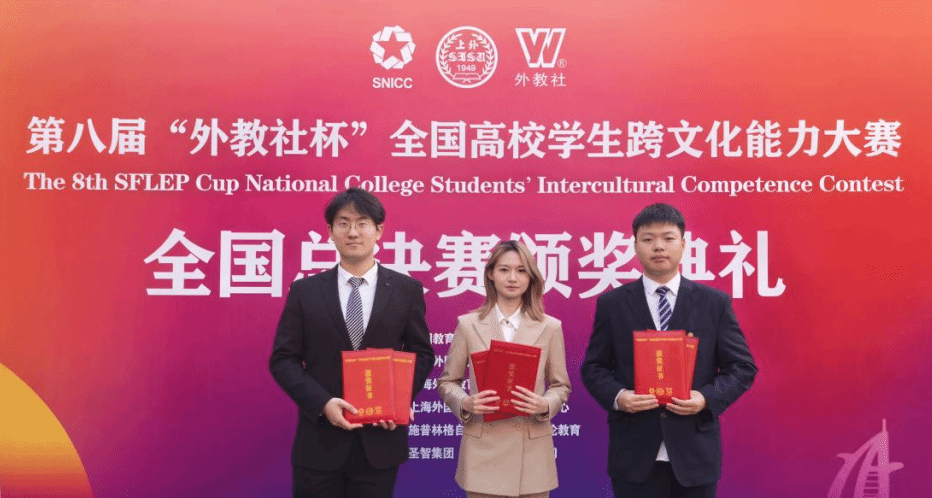 12月12日至14日,第八届“外教社杯”全国高校学生跨文化能力大赛全国决赛总决赛在上海外国语大学落幕。本届大赛规模空前,吸引了全国31个省、自治区、直辖市1050余所高校的3000多名学生参与。经过校赛、省赛层层选拔,最终76支中国学生队伍晋级全国决赛。由黄小说 软件学院刘政锐、马克思主义学院张子瀚、外语学院(高级翻译学院)蒙欣鑫三名同学组成的参赛团队,在黄小说 郑玮、李冬青、薛丽娜三位教师的悉心指导下,凭借出色的跨文化分析能力、扎实的语言功底与默契的团队协作,荣获全国二等奖,其参赛案例从众多案例中脱颖而出,斩获“优秀案例奖”。