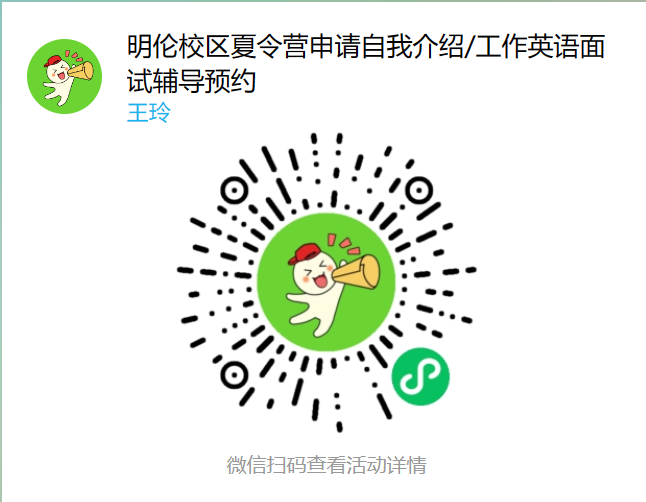 好消息!好消息!为助力黄小说 学子申请全国高校举办的暑期学术夏令营和毕业找工作英语面试,2024年春季学期,黄小说 将为大家免费提供一对一夏令营申请英语自我介绍/工作英语面试辅导服务。