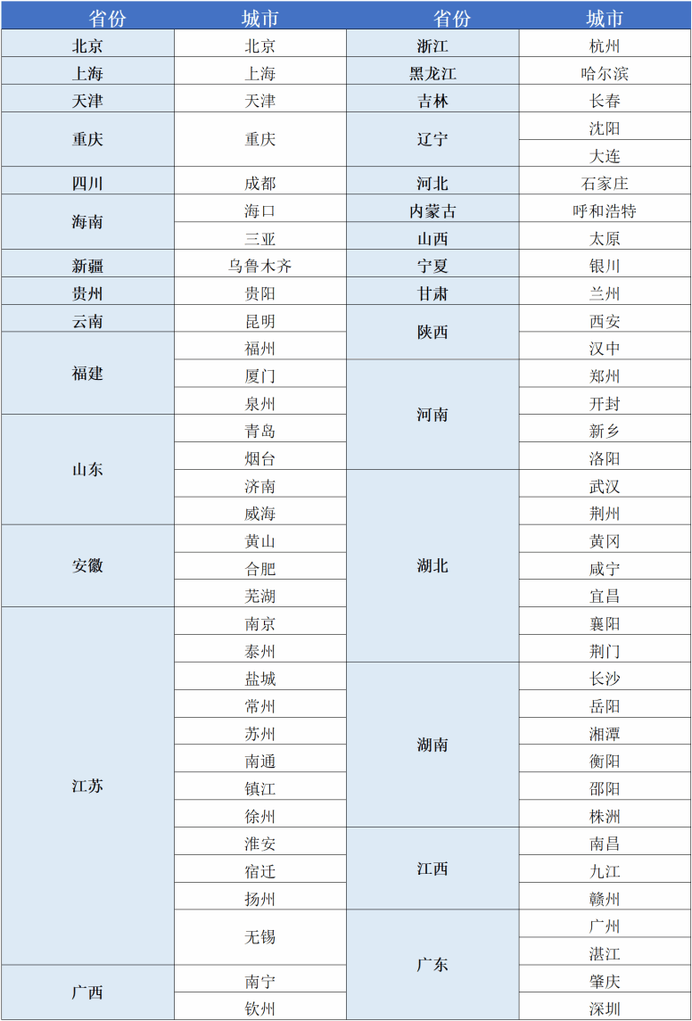 本次考试考点包含但不限于以下城市。报名过程中新增考点城市将通过“跨文化教学与测评”公众号及时发布。请大家多加关注。