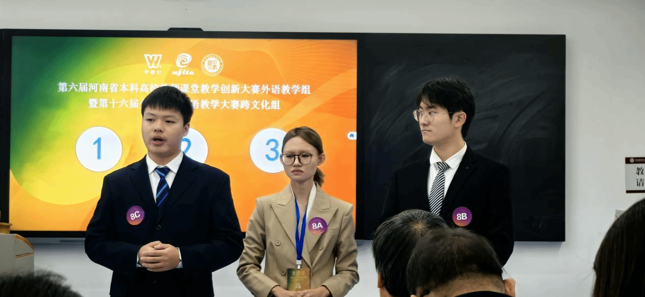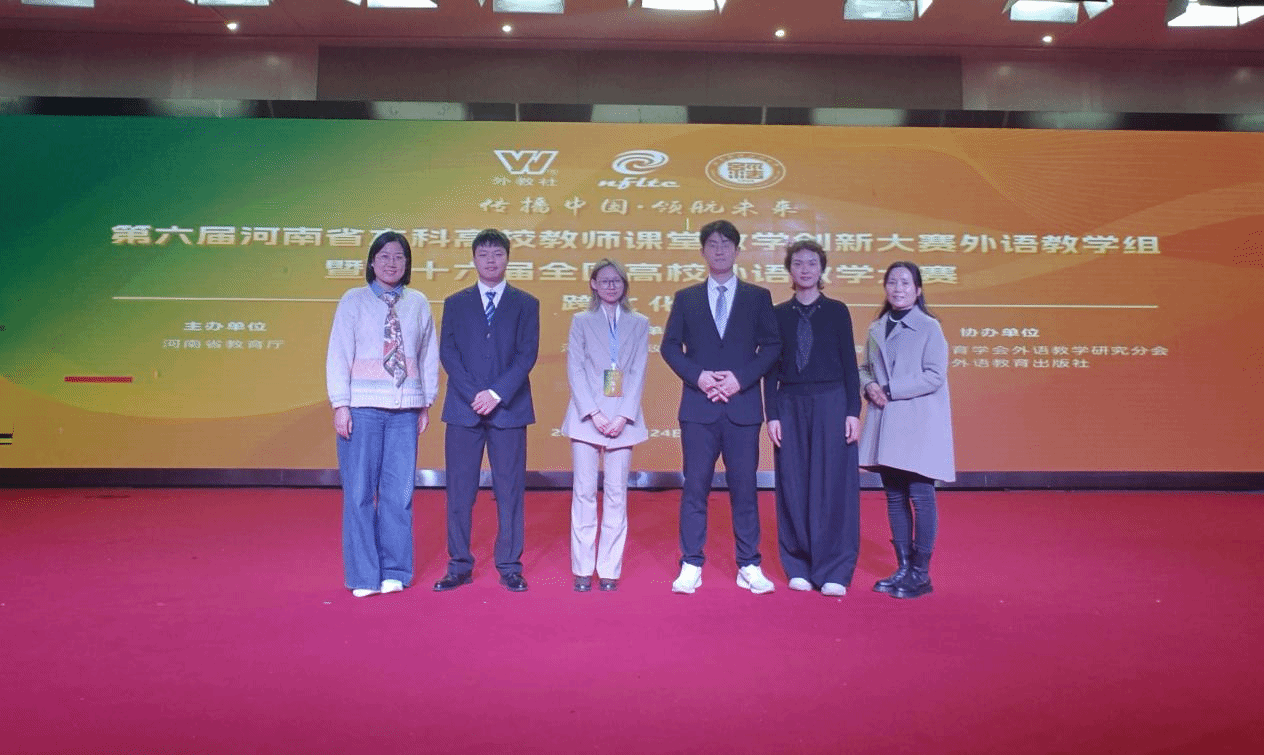 10月25、26日,第六届河南省本科高校教师课堂教学创新大赛外语教学组暨第十六届全国高校外语教学大赛河南省赛跨文化组圆满落幕。经过与其他31支参赛队伍的激烈角逐,黄小说 参赛团队凭借扎实的跨文化知识、默契的团队协作与稳健的赛场表现,以总分第1名的优异成绩荣获河南省特等奖,成功晋级“外教社杯”全国高校学生跨文化能力大赛全国总决赛。