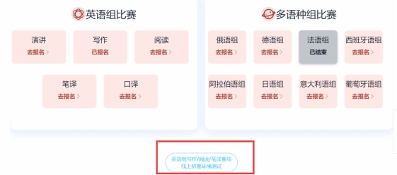 3. 写作、阅读、笔译线上初赛不支持手机作答,不支持安卓系统、苹果系统。