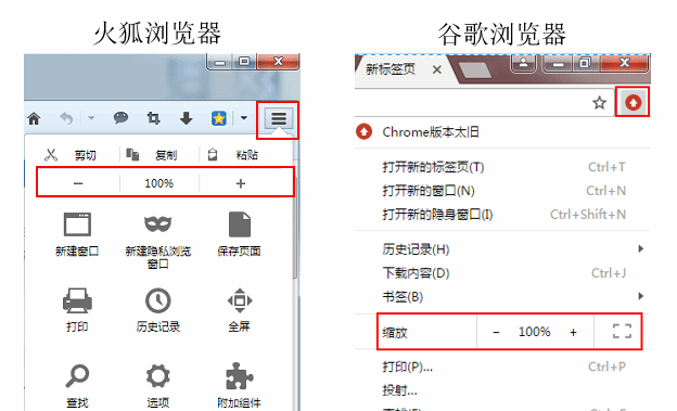1)调整浏览器显示比例: