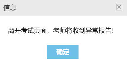 7. 答题时,选手不可查看其他页面。如离开考试页面,切屏至其他页面,系统将弹出如下提示,点击“确定”继续作答即可。系统将记录选手切屏次数。